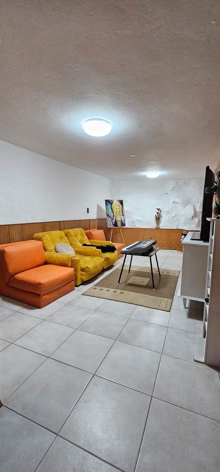Área para juegos de tv con baño